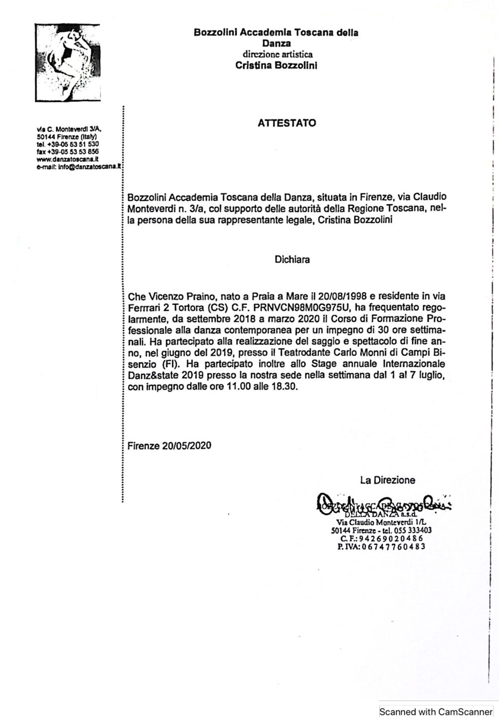- 05/10/2018 – 05/03/2020 – Formazione Professionale presso Bozzolini Accademia Toscana della Danza (Balletto di Toscana)