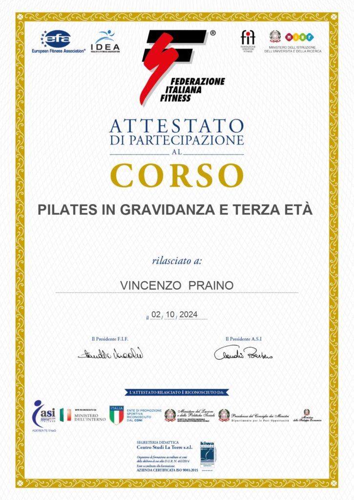 - 30/09/2024 – al 02/10/2024 Corso di pilates in gravidanza e in terza età online , con l’ente FIF (Federazione Italiana fitness),
