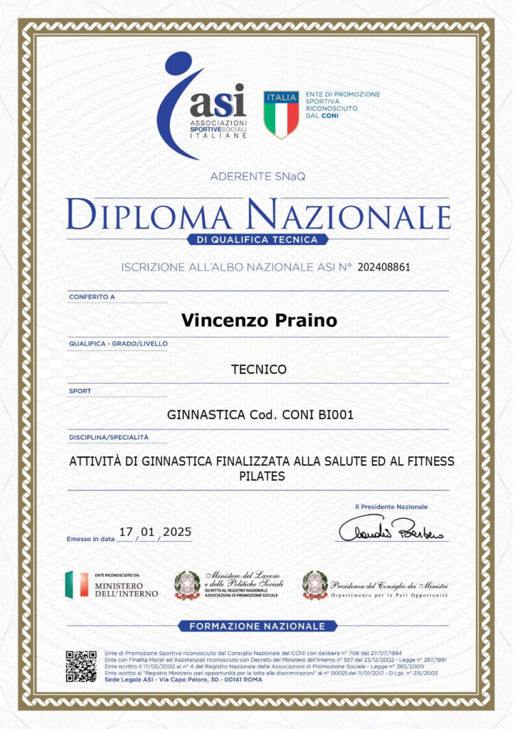 A.A 2025/2026 istruttore di pilates presso ASD polisportiva OKINAWA di Filomena Pecorelli Sapri (SA)