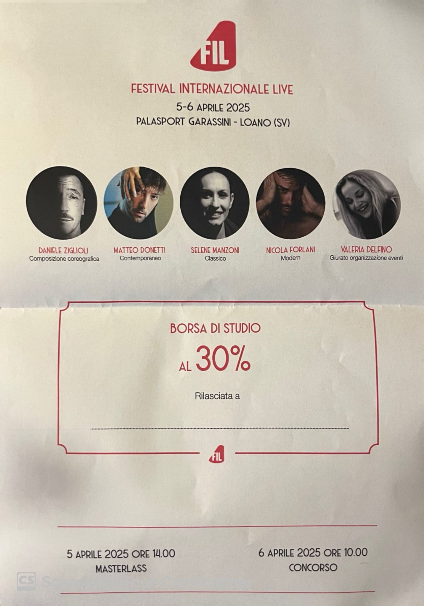 – Assegnata Borsa di studio al 50% per il Festival di danza città di Sabaudia –